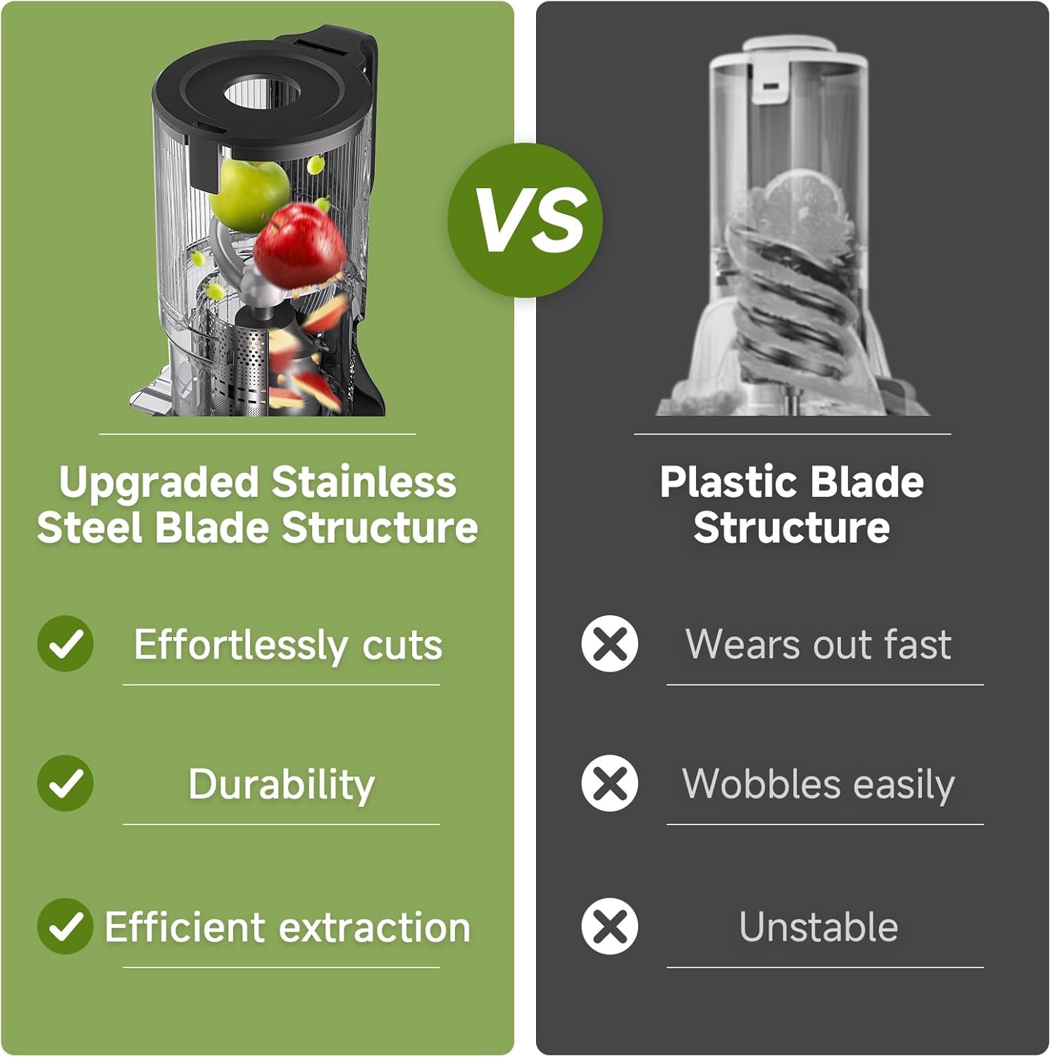 - 【Maximum Juice, Minimum Waste】The upgraded auger applies high pressure at a low speed, boosting juice yield—especially from hard fruits and vegetables. Less waste, more nutrition, and better value in every glass.