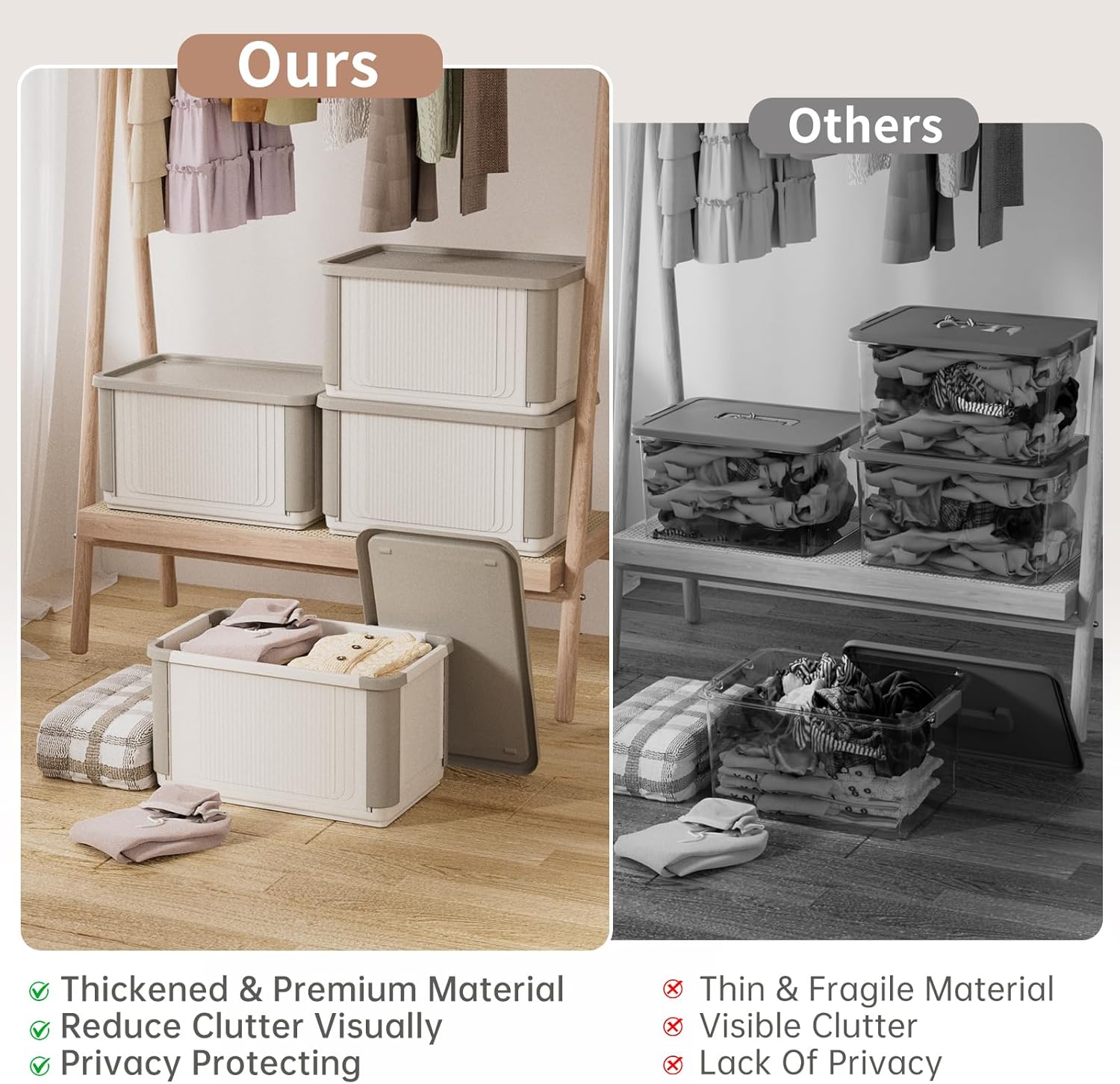 - Versatile Storage Organizer: This multifunctional storage container can be widely used as closet organizer, toy storage, pet food storage container, laundry room organization, bedroom storage, book storage, camping supplies storage and more. It can also be used to store some items full of sentimental memories.