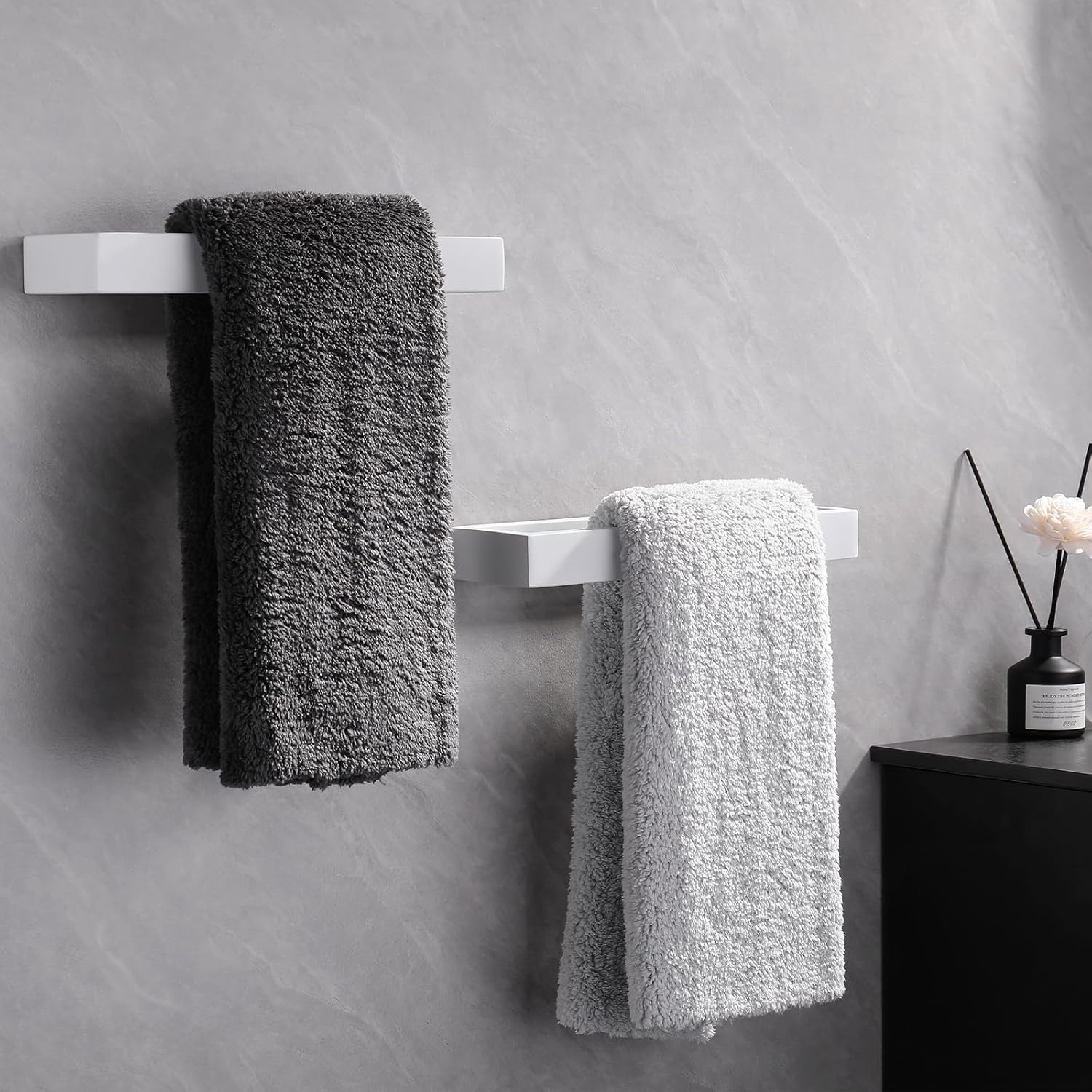 GERZWY Bath Towel Holder Stainless Steel Towel Hanger Wall Mount Towel Ring for Bathroom 2 Pack, White