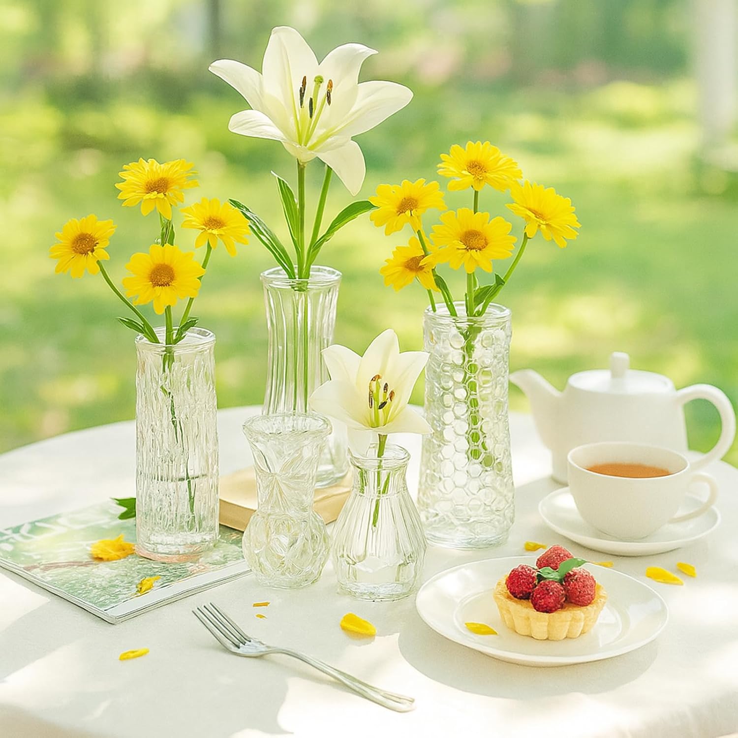Glass Bud Vase Set of 5 Pcs, Small Clear Bud Vases for Flowers, Vintage Vases for Centerpiece Table Wedding Decorations Home Decor Glass Bottles for Birthday Party Anniversary