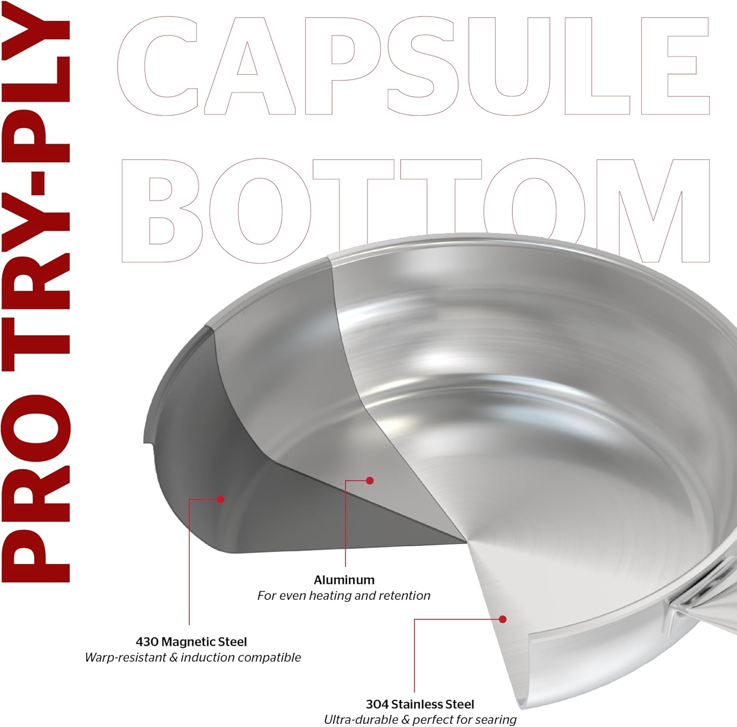 Sunhouse 8 Inch 18/10 Chef Series Stainless Steel Frying Pan, Tri-Ply Stainless Steel Construction, PFOA-FREE, Stay-Cool Handle, Induction Compatible