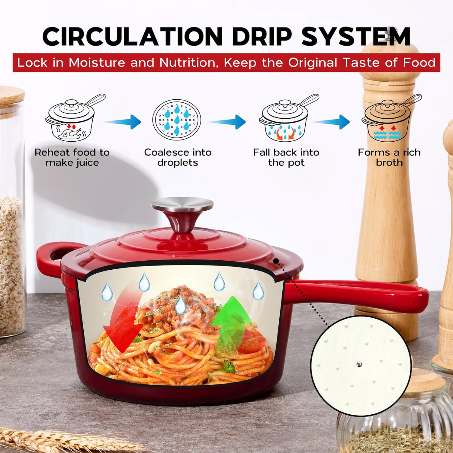 2QT Saucepan with Lid, Onader Enameled Cast Iron Sauce Pan Pot, Small Dutch Oven Cooking Kitchen Pot, Nonstick & Heavy Duty – Red