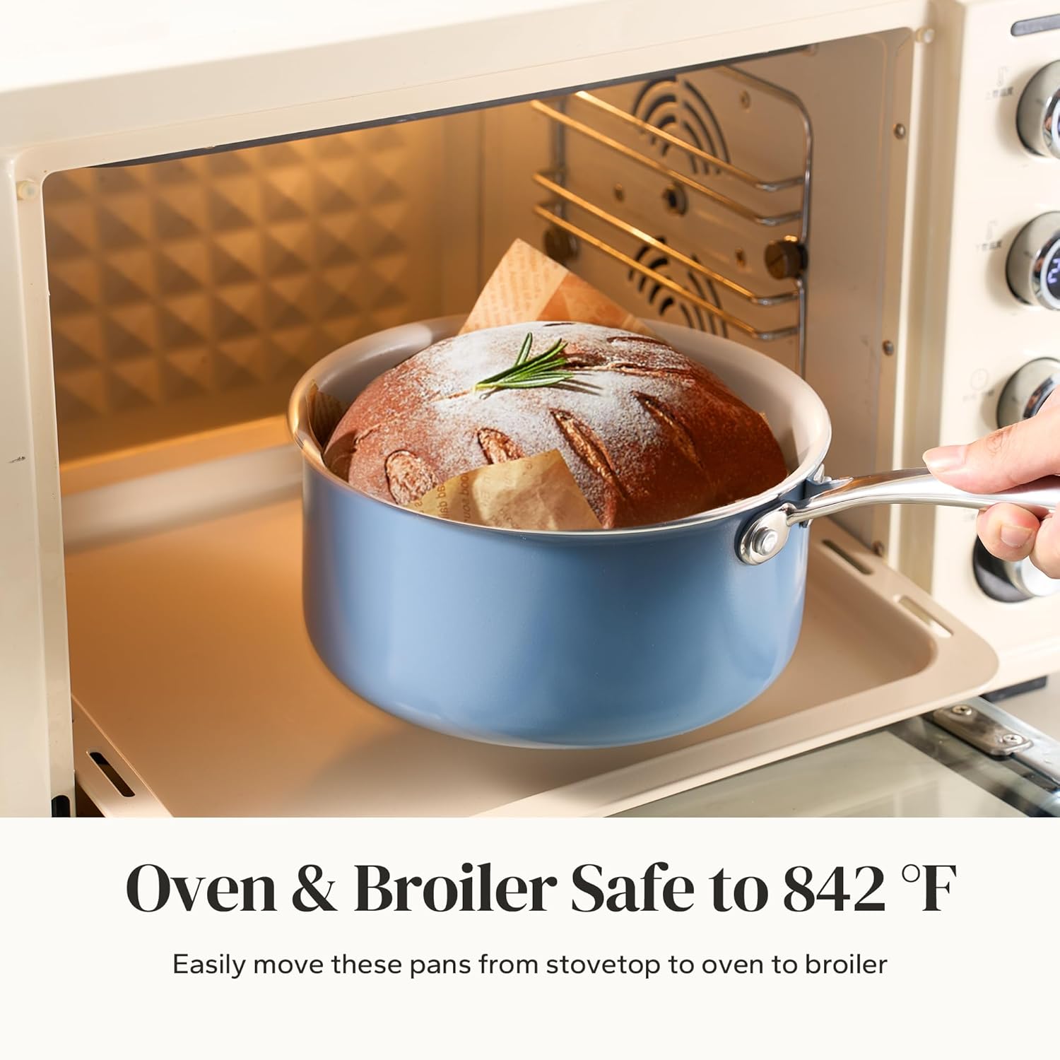 Redchef Nonstick Ceramic Sauce Pan With Lid, 3.5QT Small Cooking Pot with Stay-Cool Handle, Kitchen Non Toxic Soup Pot, PTFE & PFOA Free, Oven & Dishwasher Safe, Compatible with All Stovetops-Blue