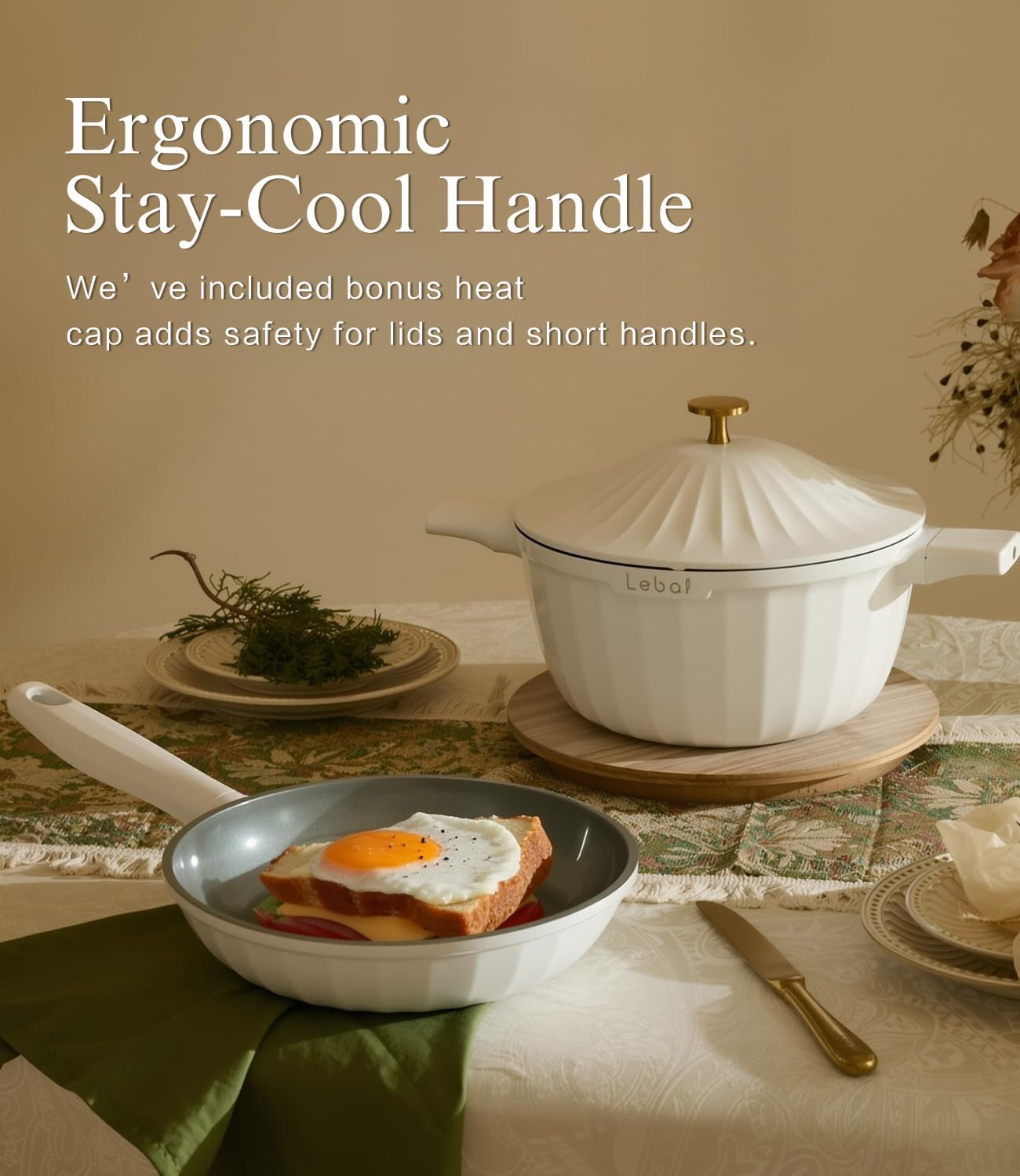 - Thoughtful Design for Everyday Ease: From streamlined ridges that lock in flavor to a raised notch that keeps the lid steady while boiling—every design choice serves a purpose. Dual-sided spouts make pouring easy from either side, and the stay-cool handle with heat cap adds comfort and safety.