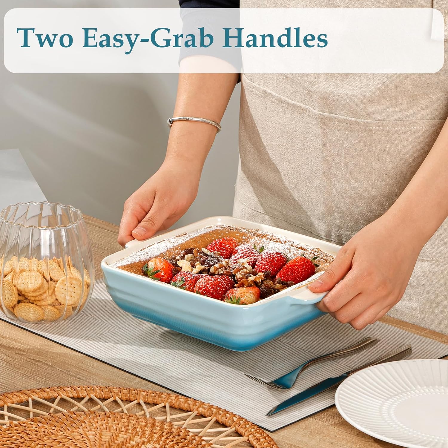 - 【WIDE RANGE OF USES】This versatile dish does it all: bake, roast, reheat in the microwave, and store leftovers in the fridge. Its multi-device compatibility means you can go from oven to table to fridge without switching containers—simplifying meal prep and cleanup.