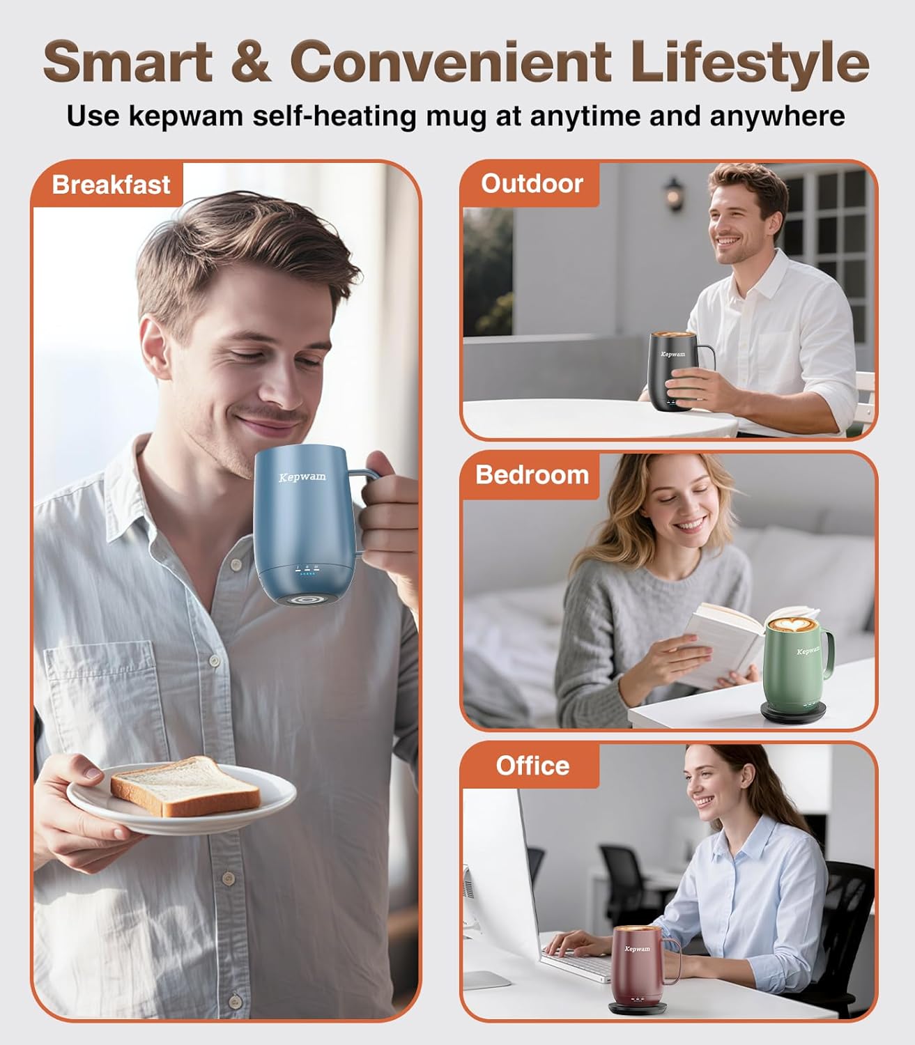 - 20oz Extra-Large Capacity – Kepwam T2-PLUS self heating coffee mug holds 2X more than standard mugs (10-12oz),reducing refills perfect for all-day hot coffee or tea drinks.