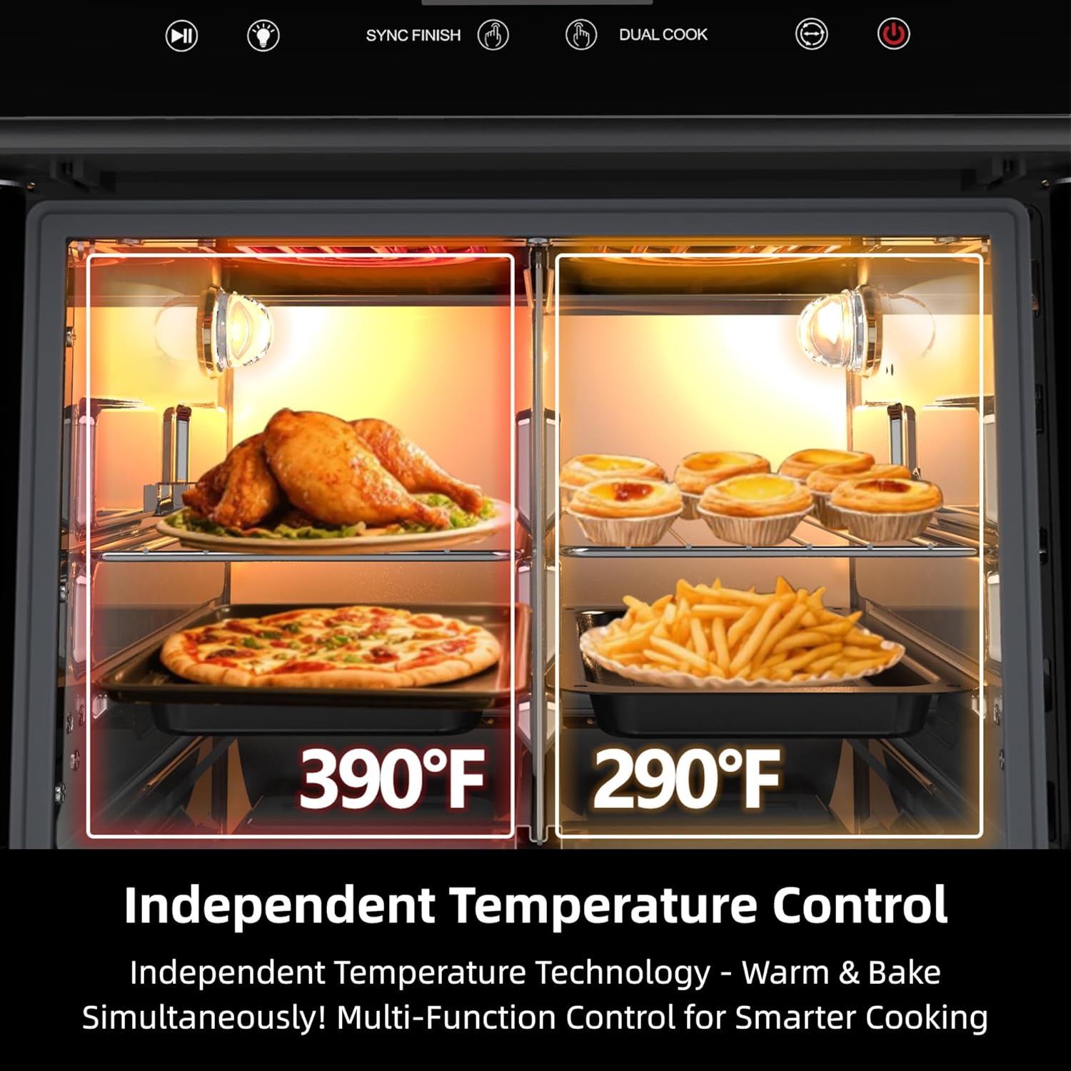 - 4. **⏱️ Dual-Door Design for Smart Cooking: French doors open with a single pull – an interior light allows you to monitor your food as it cooks. Perfect for after-school snacks AND holiday feasts in one sleek unit.