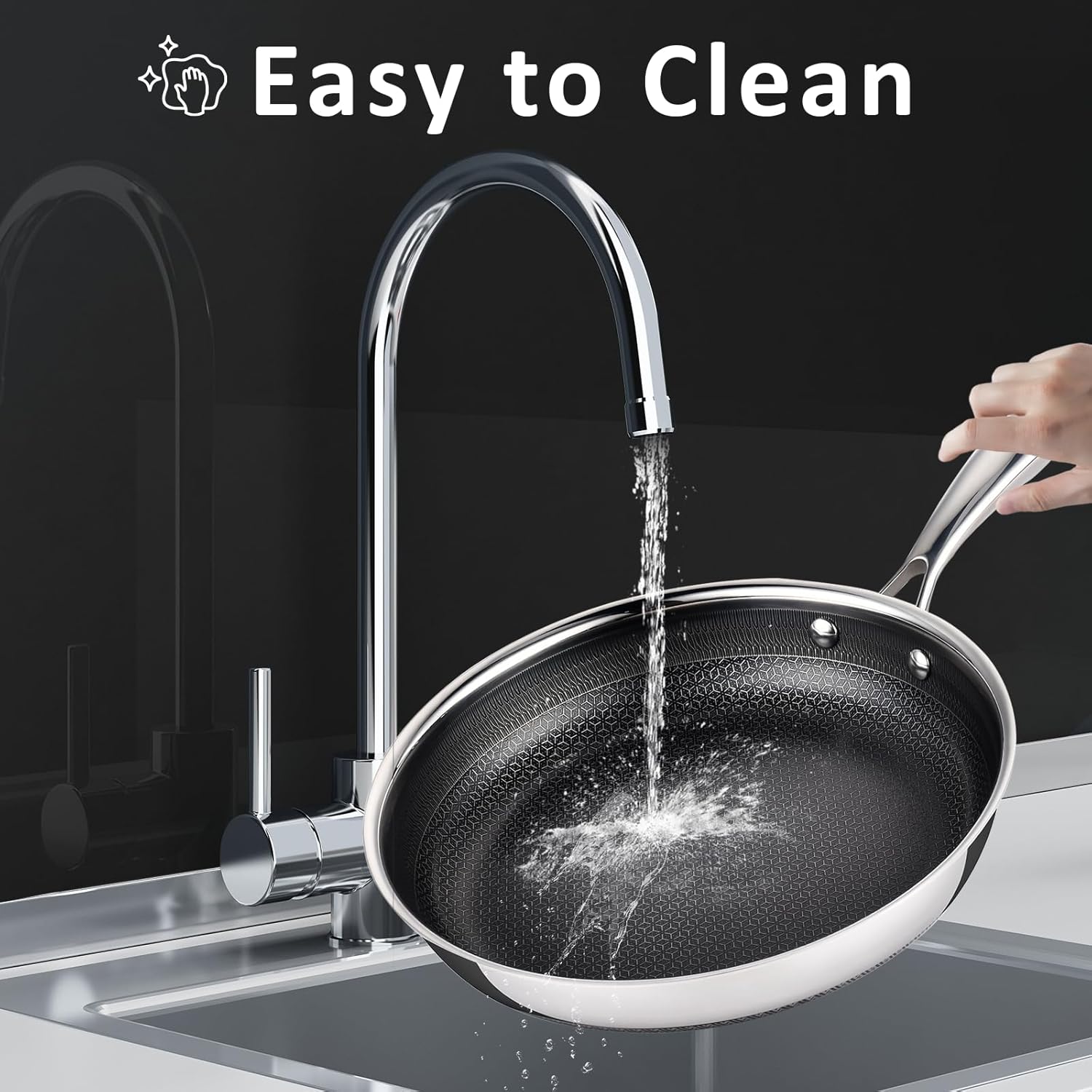 - Advanced Etching Technology: Utilizes laser etching to create honeycomb carving surfaces on the interior of the cookware, enhancing the durability of stainless steel while allowing cooking with less oil or butter. The energy circle pattern etched on the bottom of the pan greatly optimizes heat concentration and transfer.