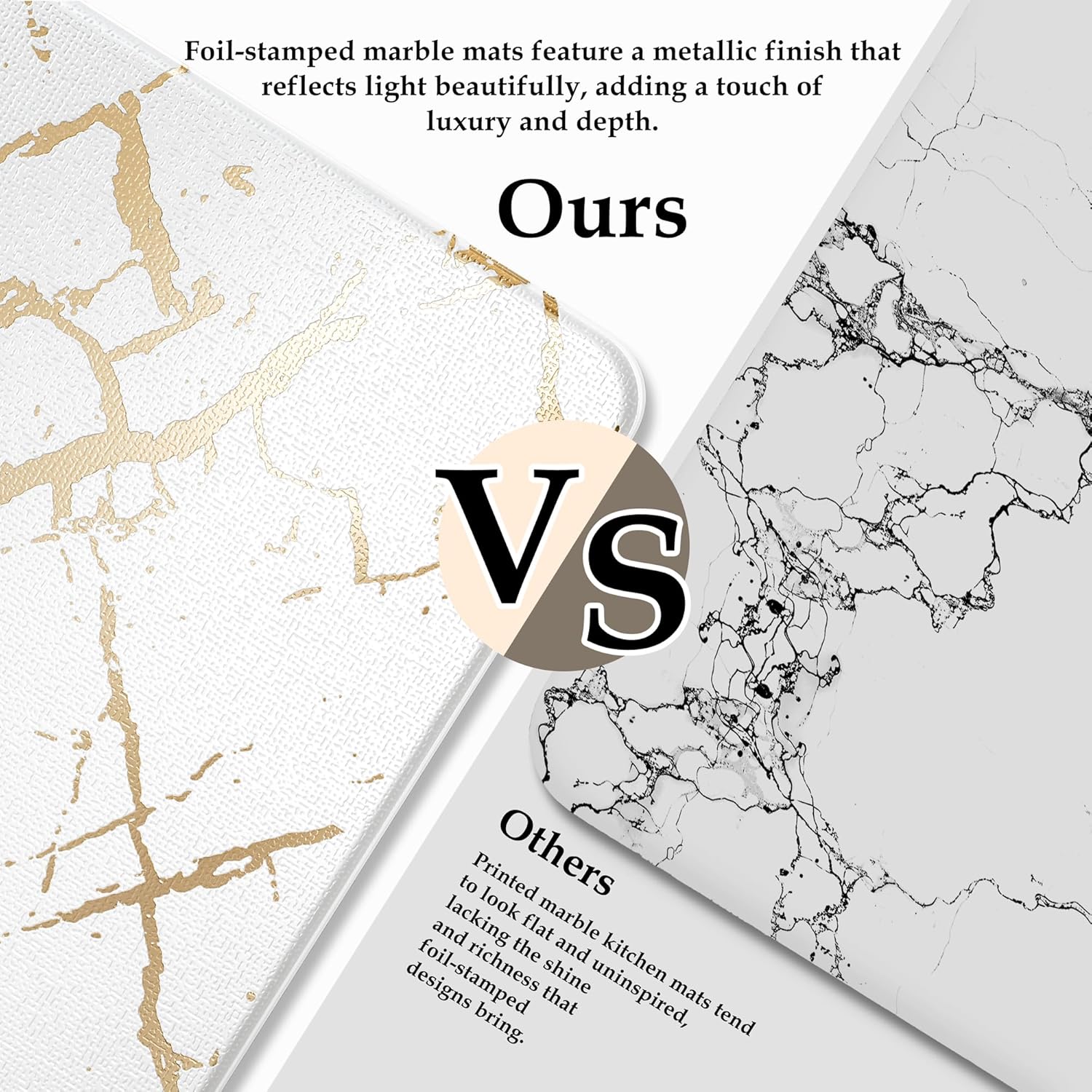 - Foil Stamped Marble Mats: Elegant marble pattern with gold foil finish, foil stamping creates refined texture and dazzling shine vs ordinary prints, crafted with waterproof, easy-to-clean leather. Sizes: 17.3"x28"+17.3"x47" or 17.3"x28"+17.3"x59"