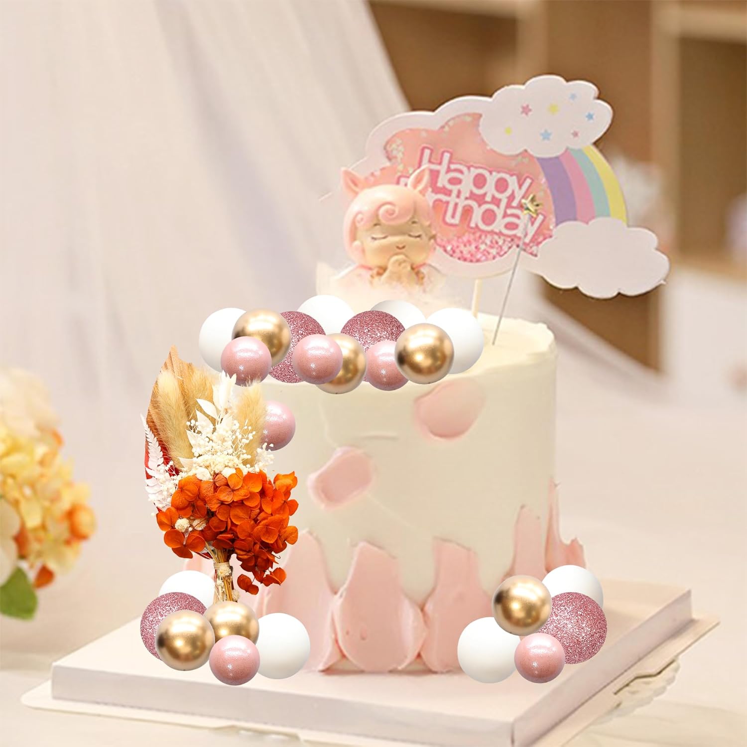 Gyufise 21 Pack Flower Boho Cake Topper Ball Cake Decorations Palm Leaves Plants Cake Decor for Girl Bohemian Princess Theme Wedding Baby Shower Birthday Party Supplies Rose Gold