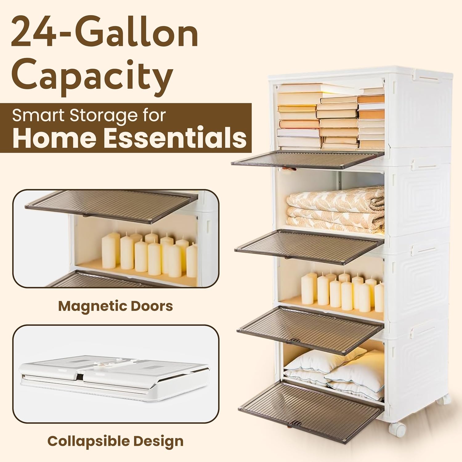 Quik Box Sport 4-Tier Stackable Storage Organizer - 24 Gallon Capacity Collapsible Bins with Magnetic Doors, Space-Saving Vertical Storage for Bedroom, Closet, Dorm Organization