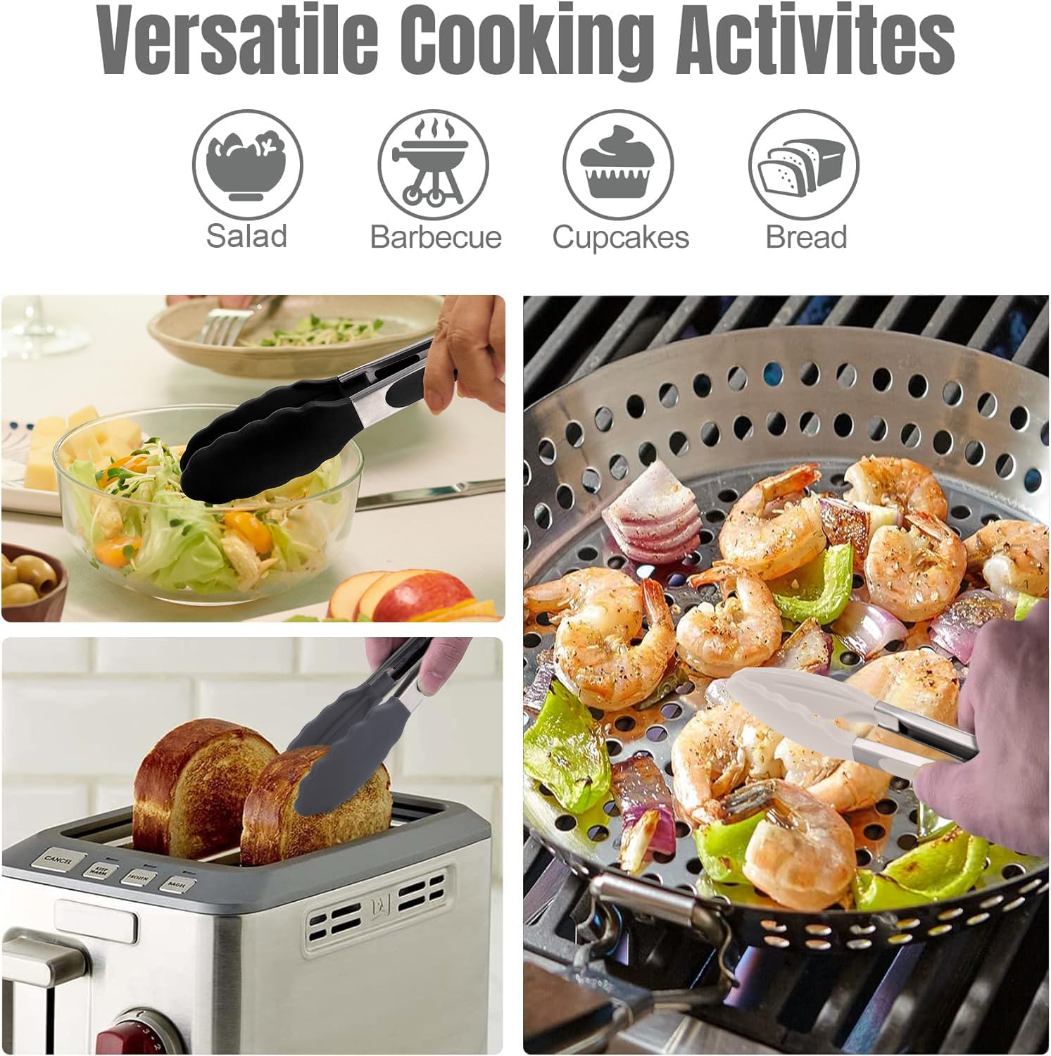 - MULTIPLE APPLICATIONS: Cooking tongs are the perfect tool for individual serving at the table or when hosting a buffet. They excel at handling various foods, making them ideal for home-made salads, appetizers, and taco bars. Whether you're serving cheese, veggies, lettuce, beans, or bacon, these small tongs will make your food presentation effortless and elegant. Elevate your dining experience with these versatile and practical tongs!