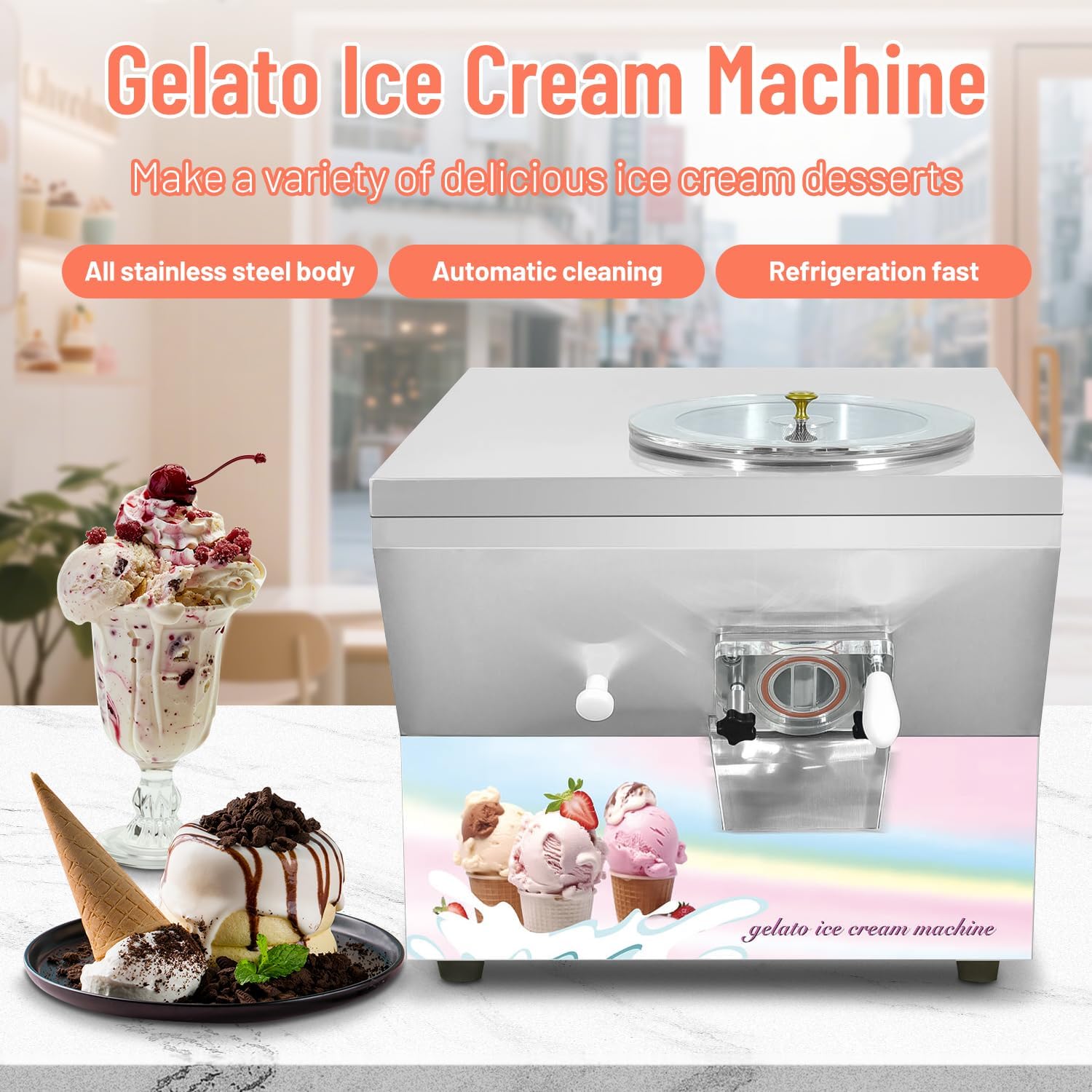 - Innovative Mixing & Customization The see-through lid allows easy addition of chunks, fruits, nuts, or chocolate mid-process. Two dispensing options: automatic nozzle or manual top extraction. Ideal for creating custom gelato, sorbet, or frozen yogurt with mix-ins.