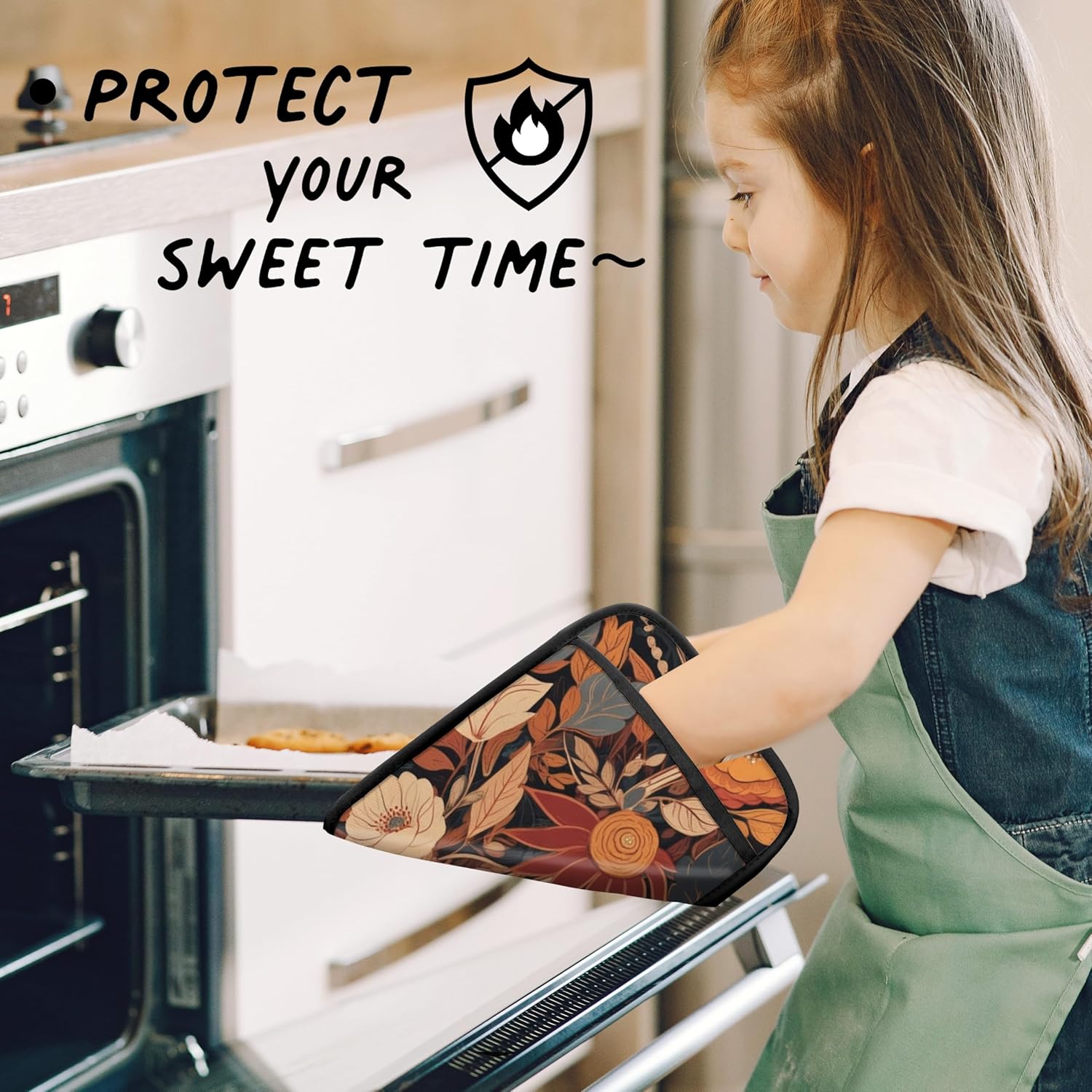 Boho Vintage Floral Pot Holders for Kitchen, Mid Century Modern Boho Flower Botanical Heat Resistant Hot Pads and Oven Mitts for Baking Cooking