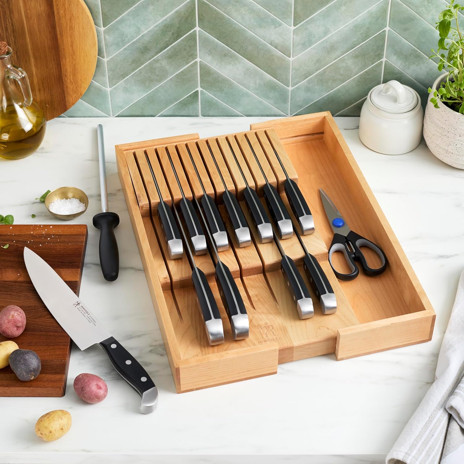 Henckels Statement 15-pc Knife Set with In-Drawer Knife Tray, Razor-Sharp, German Engineered Informed by over 100 Years of Experience, Lightweight and Strong, Dishwasher Safe