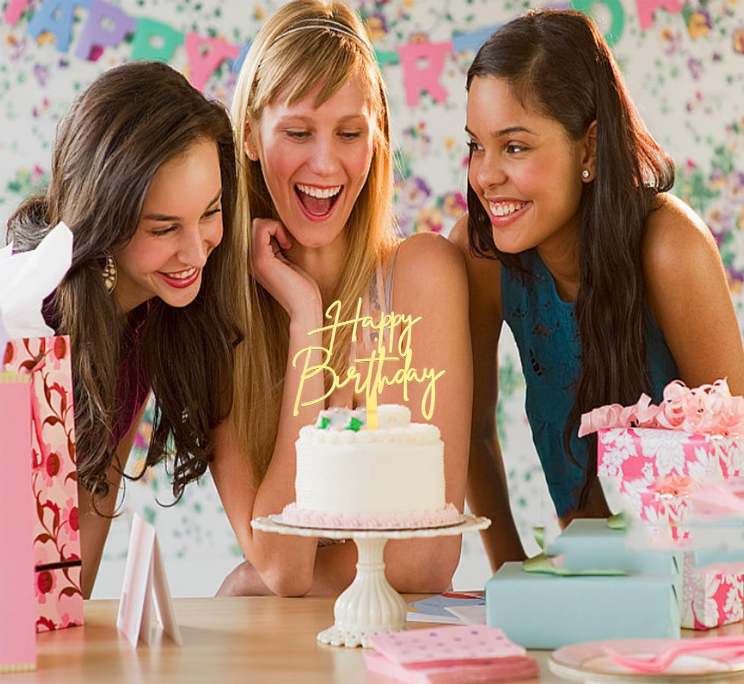 Happy Birthday Cake Topper, Gold Mirror Acrylic Happy Birthday Cake Sign Decorations