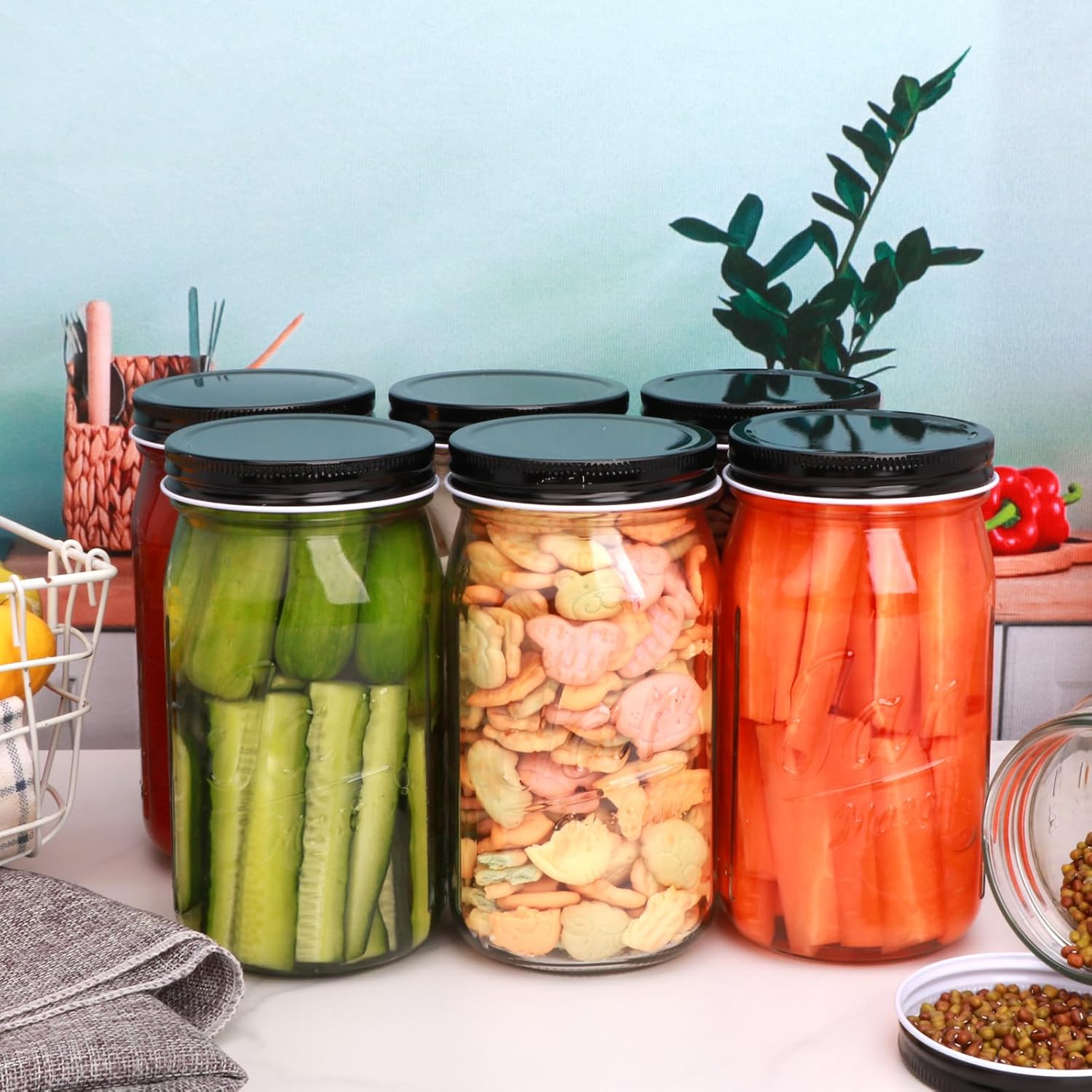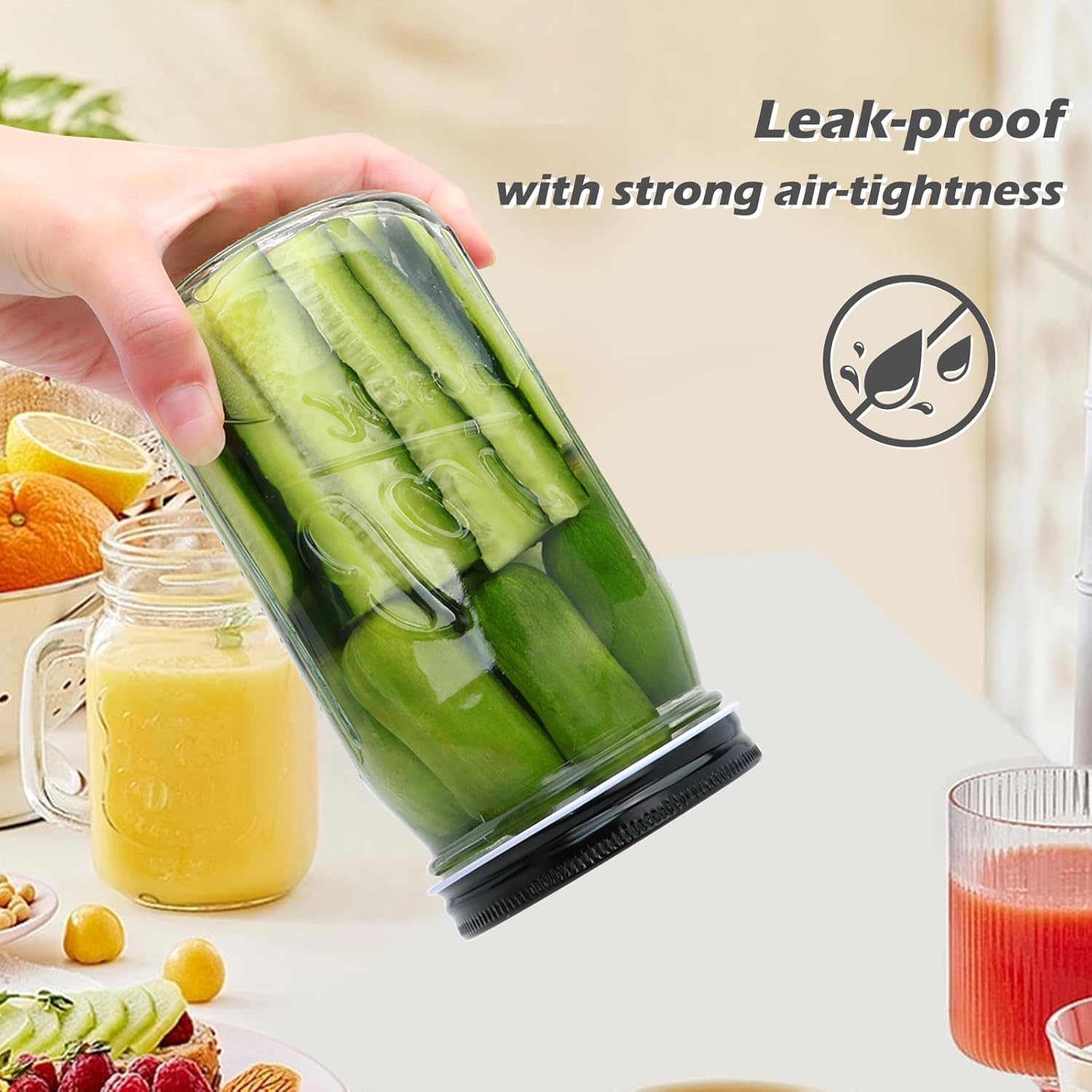- Reliable Airtight Seal - Featuring a silicone-lined lid for a proven airtight seal, which will create vacuum-tight closure for zero-spill liquid storage,our wide-mouth mason jars are versatile performers ideal for canning, pickling, and preserving everything from jams to jellies.