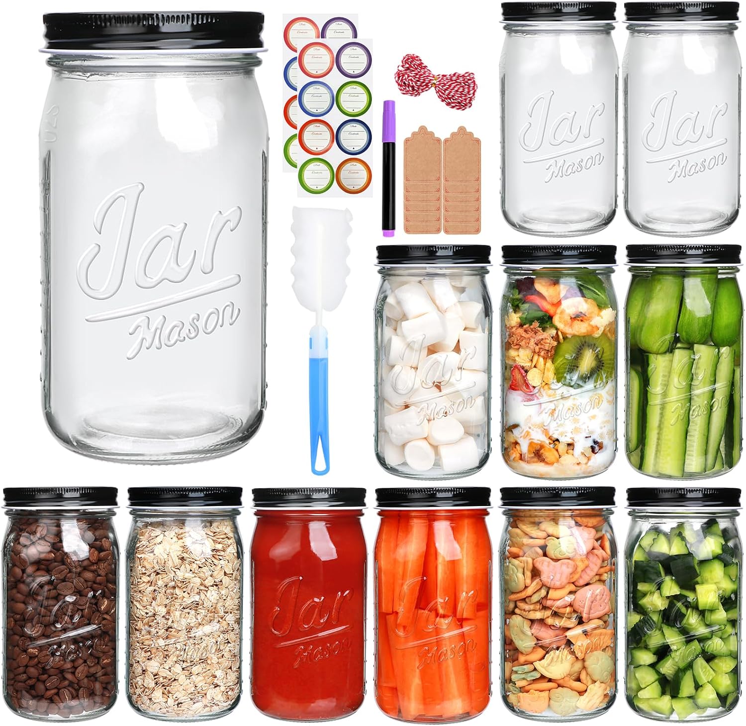 - Professional Multi-Purpose Design:Our transparent stackable mason jars offer exceptional versatility for a wide range of applications, including pantry organization, vegetable pickling, jam preservation, and meal preparation. They are equally suited for DIY projects such as candle making and terrarium construction, as well as homebrewing and fermentation processes. Ideal for storing overnight oats, spices, coffee beans, soups, pickled goods, and pet food. They also serve as elegant containers for creating homemade gifts for special occasions including weddings and birthday celebrations.