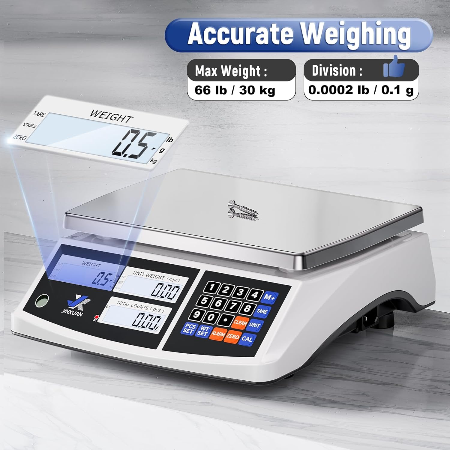 Industrial Counting Scale, 66lb/30kg Industrial Scale Electronic Bench Scale with Stainless Steel Platform LCD Display, Digital Inventory Scale for Small Parts Coins Piece, 0.0002lb/0.1g, lb/g/kg/oz