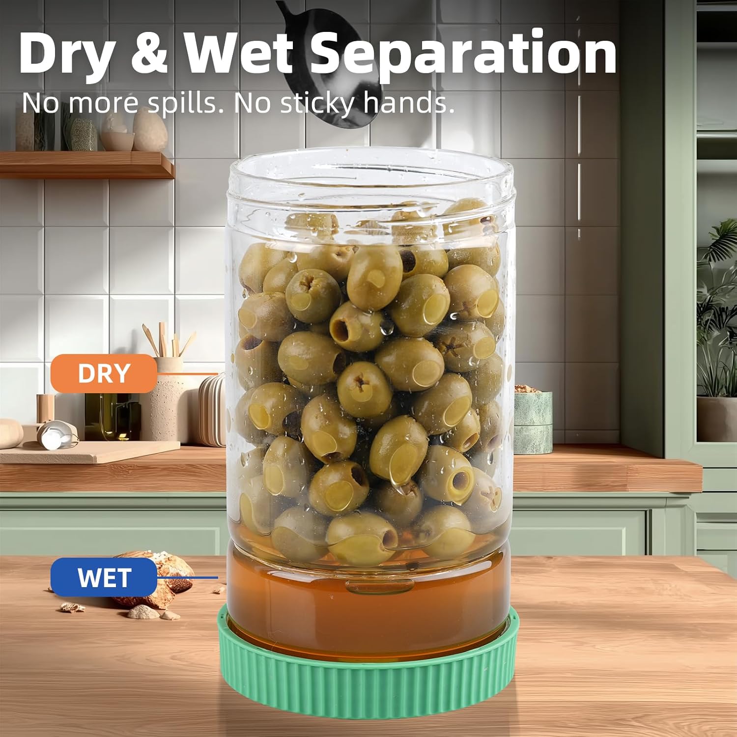 - Pickle Juice Separation: WENHHUUA pickle flip jar features a double-layer design that separates pickles from pickle juice. When flipped, liquids quickly flows through the glass strainer into the base, instantly yielding drained pickles and olives. This eliminates messy dripping and sticky hands during use. Simply reverse the jar to re-immerse pickles in brine, preserving crispness and flavor. Pickles jar are useful tool for pickle enthusiasts.