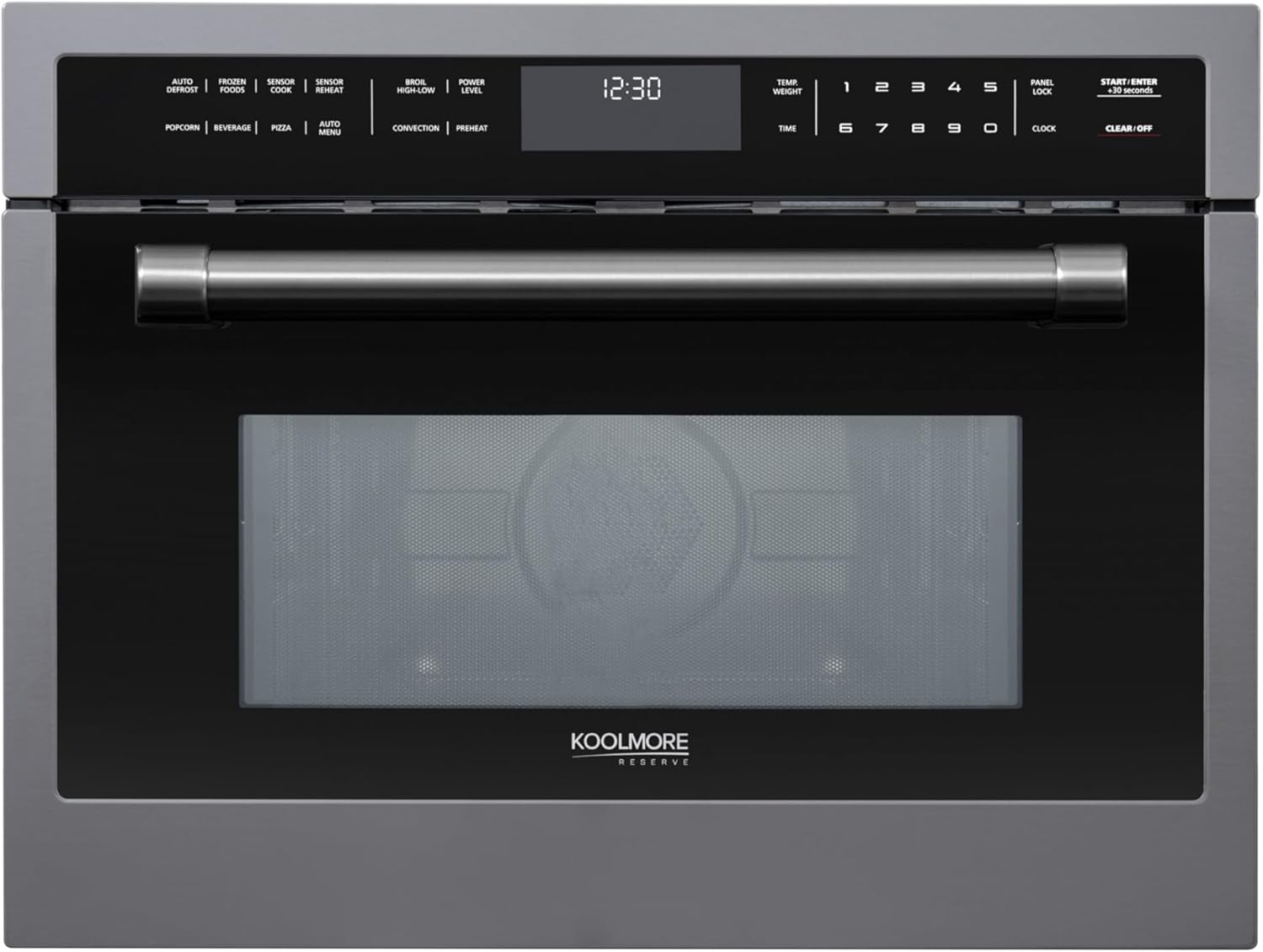 KoolMore Reserve 24 in. 1.6 cu. ft. Built-in Convection Microwave Oven with Air Fryer, 10 Power Levels, Sensor Cooking, Bake, Roast, Broil, Defrost, 1750 Watts, UL Certified in Black Stainless-Steel