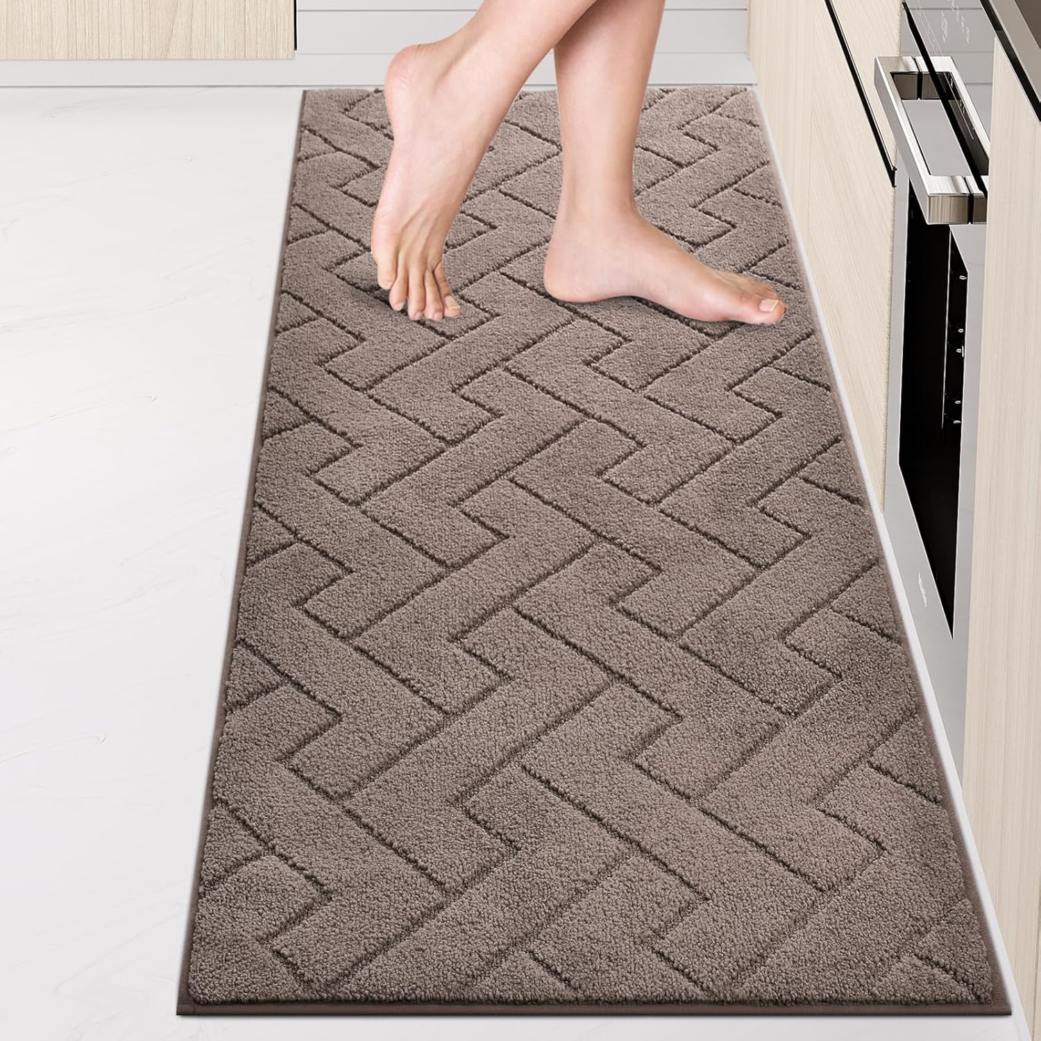 - [Comfortable & Non-Slip]: Kitchen Runner Rugs offer comfort and convenience when cooking, washing dishes or doing laundry. The sturdy, non-slip TPR rubber backing keeps them firmly in place and helps prevent hazards such as trips and falls. Before placing, make sure the floor is clean and dry.