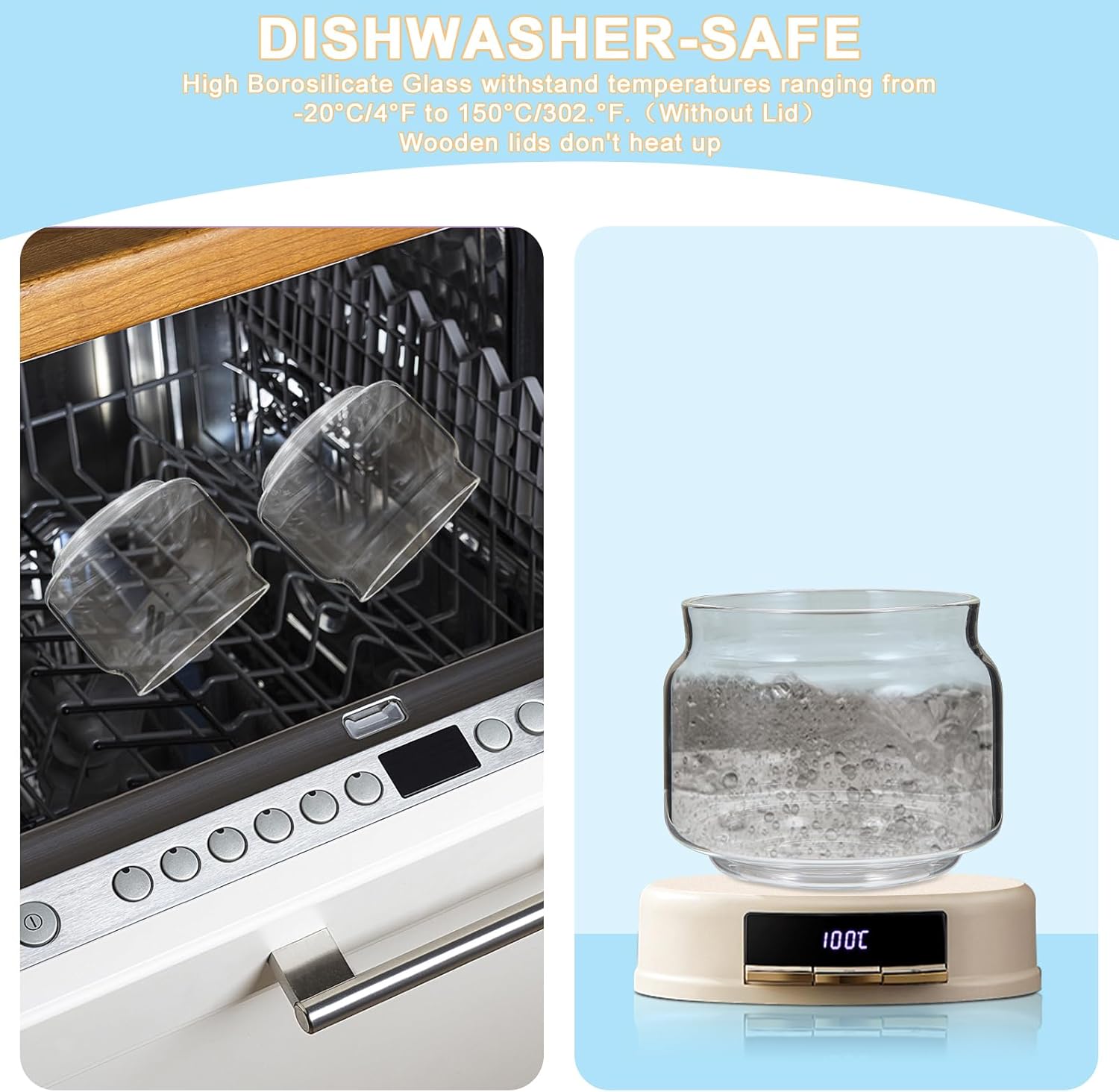 - 【MATERIAL & QUALITY】: glass jar with spoon made of high-borosilicate glass With the advantages of high and low temperature resistance,small glass jars with lids Can burn directly on fire, and the maximum temperature it can withstand is 150℃ /302°F, In a low-temperature environment, the lowest temperature is -20℃/-4°F(Just the glass, not including the lid)Each Clear glass jar has a food-grade silicone seal on the lid.All materials safe and non-toxic.Easy to clean .