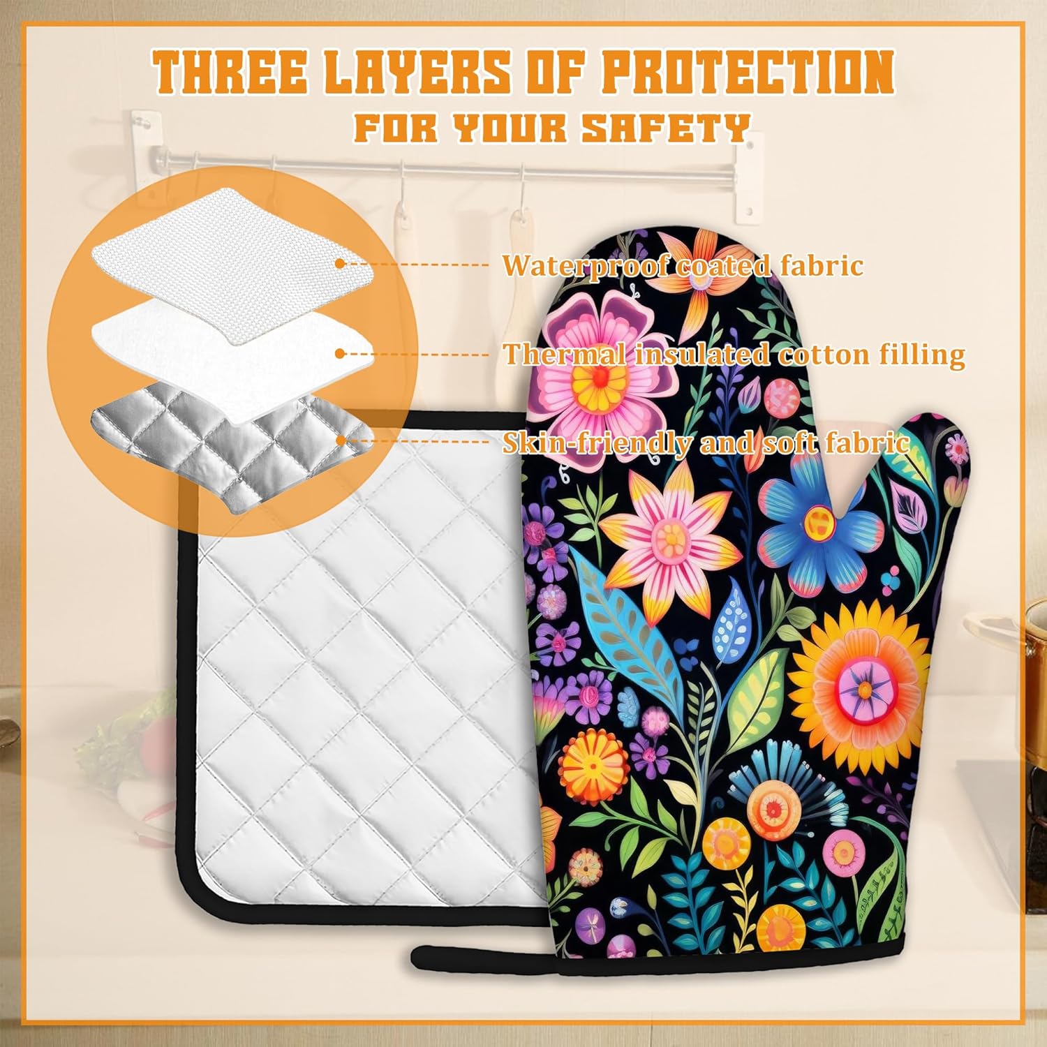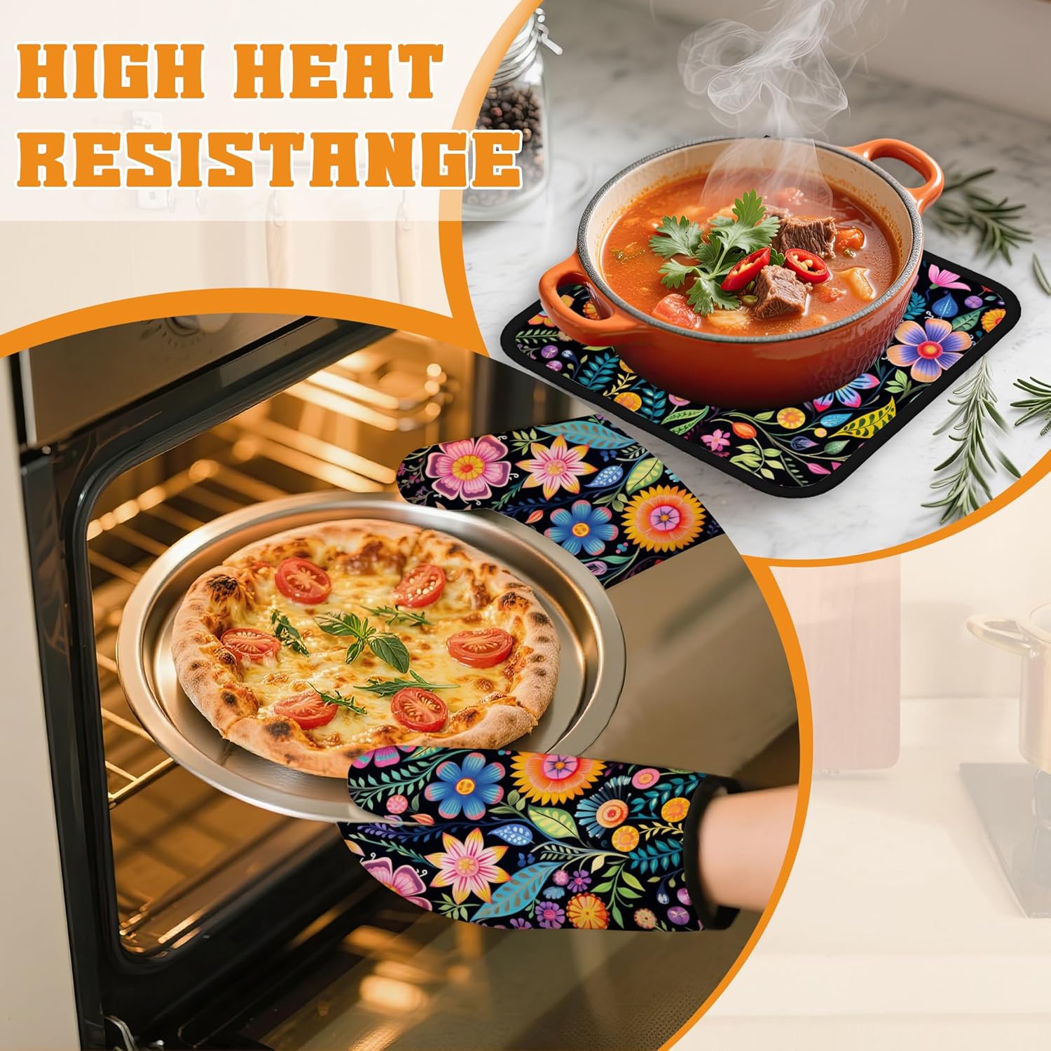 - Heat Resistant: Made from polyester and insulating cotton, these oven mitts and pot holders provide excellent heat resistance to effectively protect your hands from hot pots, pans, and baking trays. Cook with confidence and safety.