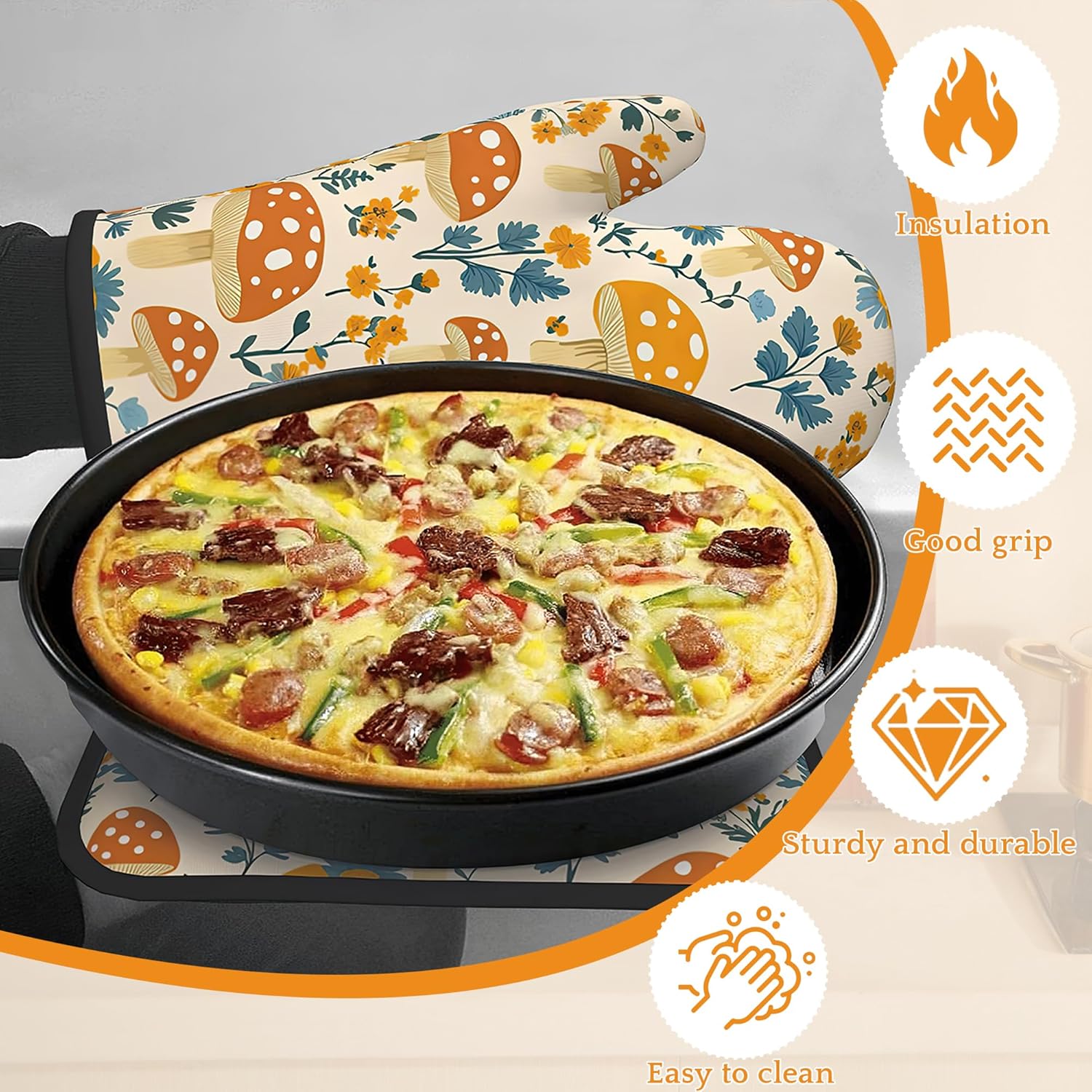 Cute Mushroom Forest Oven Mitts and Pot Holders,Floral Flower Heat Resistant Oven Mitts Gloves and Pot Holder for Home Kitchen Decorations Cooking Baking BBQ Gifts,Set of 4