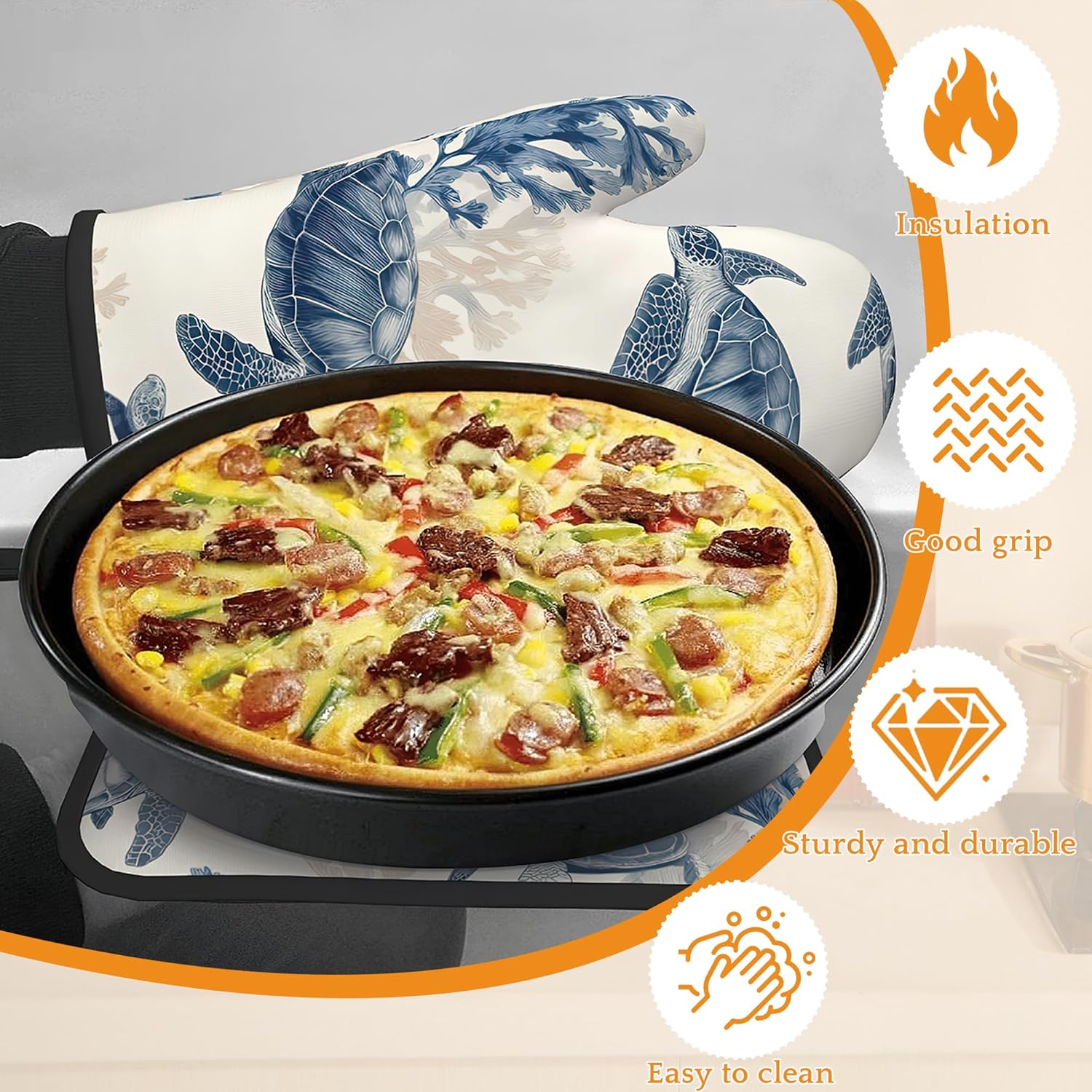 Turtle Coral Oven Mitts and Pot Holders Set,Kitchen Oven Gloves and Pot Holder with Heat Resistant Non Slip for Cooking Baking Grilling(4 Piece Set)