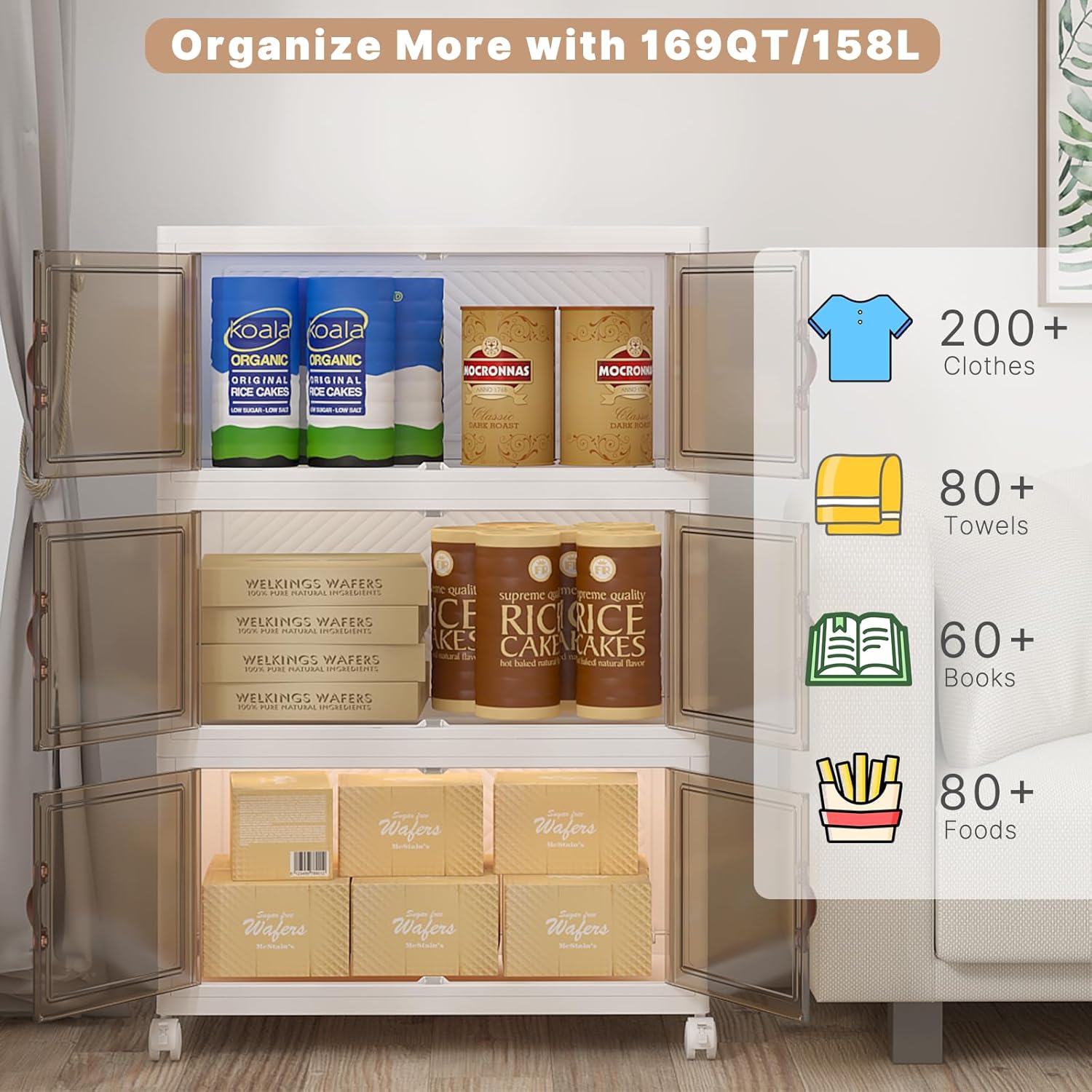 Extra Large Stackable Storage Bins with Lids and Wheels, Foldable Collapsible Closet Organizers,720QT-120QT/30GAL*6Pack Plastic Stackable Storage drawers for Bedroom Dorm