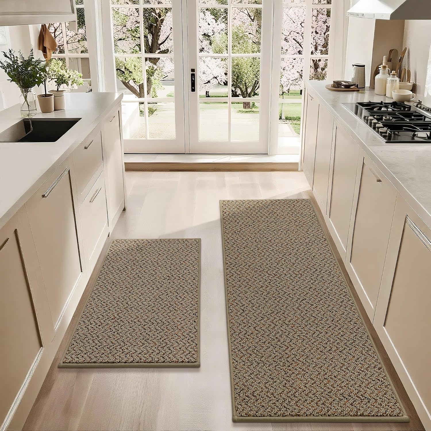 COSY HOMEER Kitchen Rugs Non Slip Washable 24"x36"+24"x60" Absorbent Kitchen Mats for Floor Stain Resistant Kitchen Runner Rug Sets of 2 Kitchen Floor Mats for Sink,Taupe
