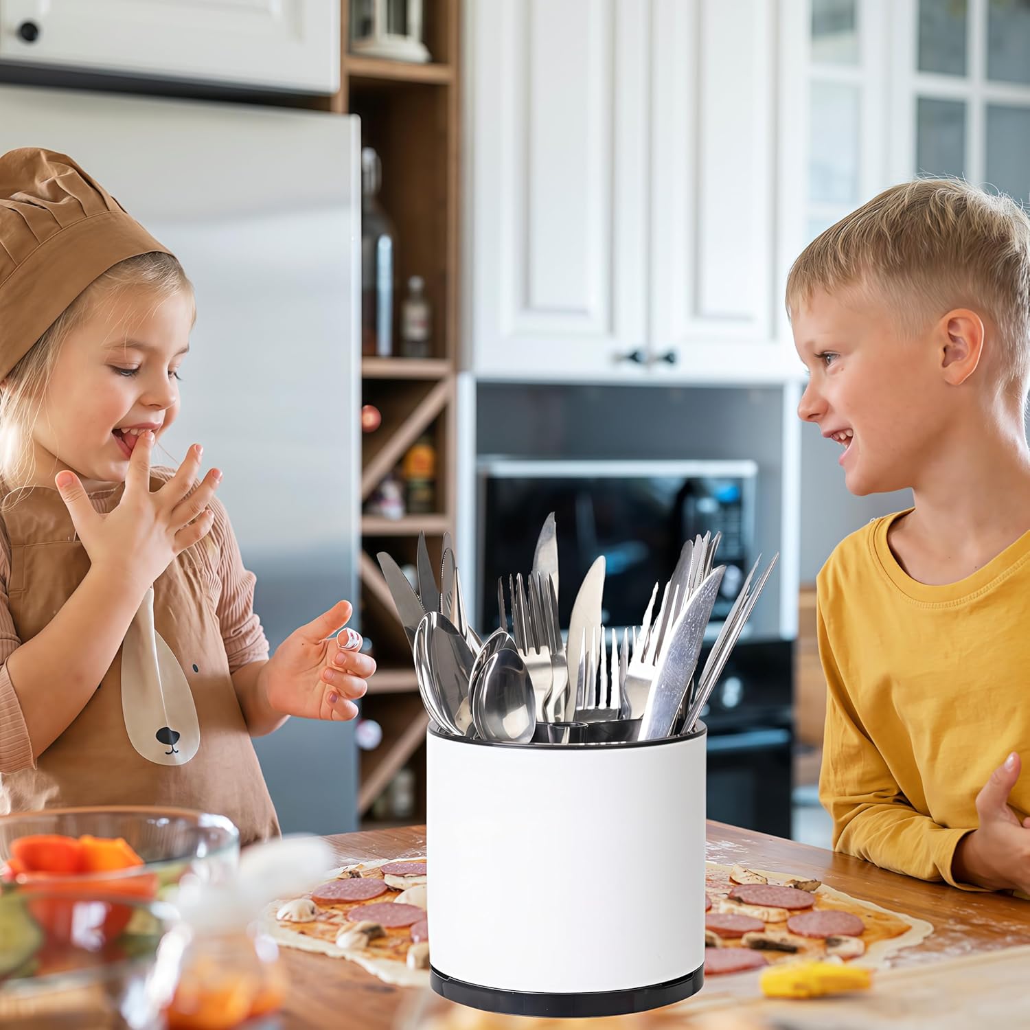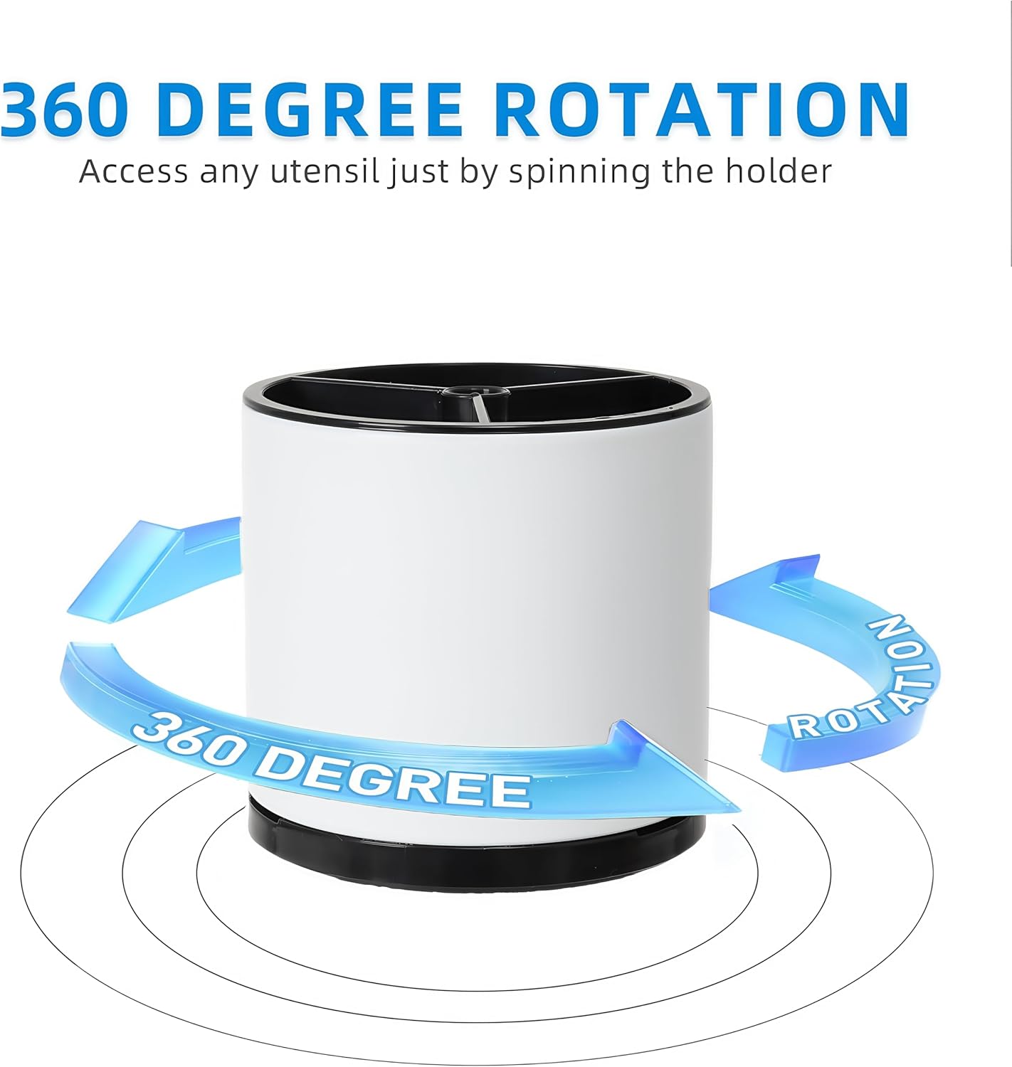 - 360° Rotating Utensil Holder: The 360° utensil caddy with rotating design makes it silverware organizer are easy to use and also a great stress relieving companion in the kitchen.The base of the utensil caddy on the kitchen countertop is equipped with 4 non-slip rubber pieces to secure utensils and prevent scratching the kitchen surface. It provides a simple and efficient storage solution for all your kitchen utensils.